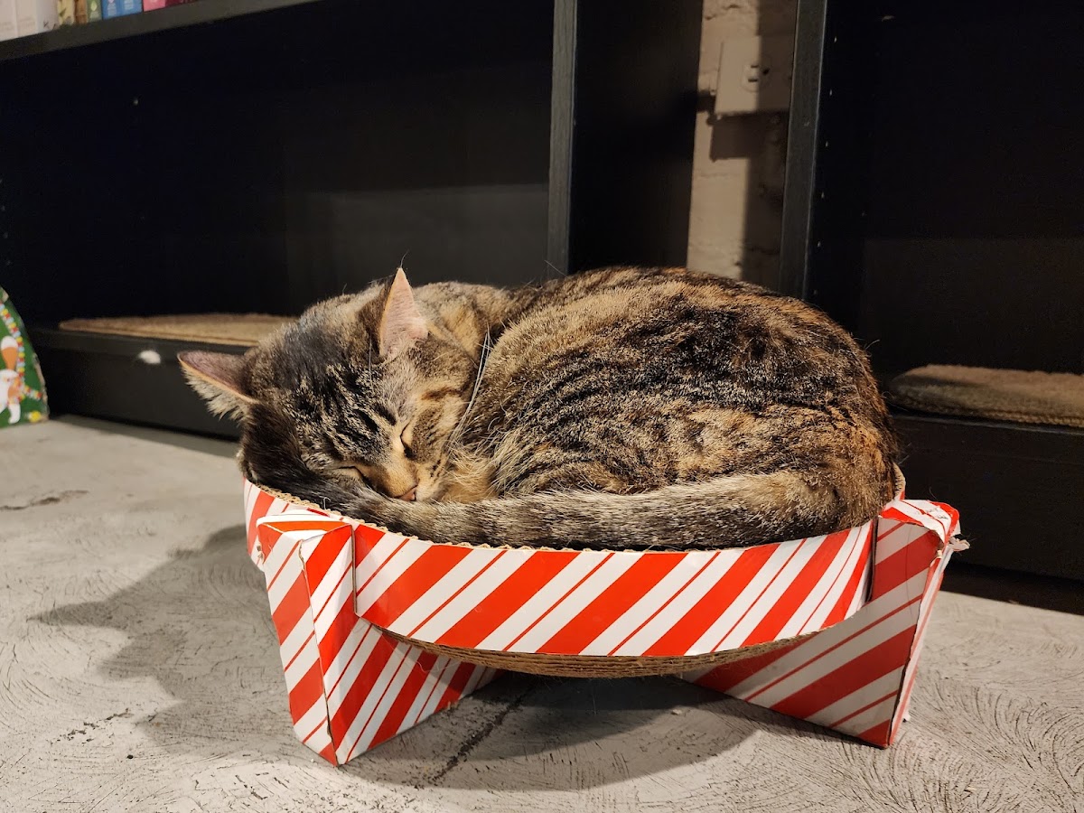 The moment you enter, the inviting aroma of freshly brewed coffee surrounds you, setting the stage for the delightful experience that awaits. The café is thoughtfully designed, with an upper level perfect for savoring your favorite drink while browsing through a diverse collection of books. Meanwhile, venture downstairs to discover the true stars of the show—the cats! This open and spacious area is an idyllic spot to relax, offering a myriad of cozy nooks to curl up with a furry companion as you dive into a captivating read.